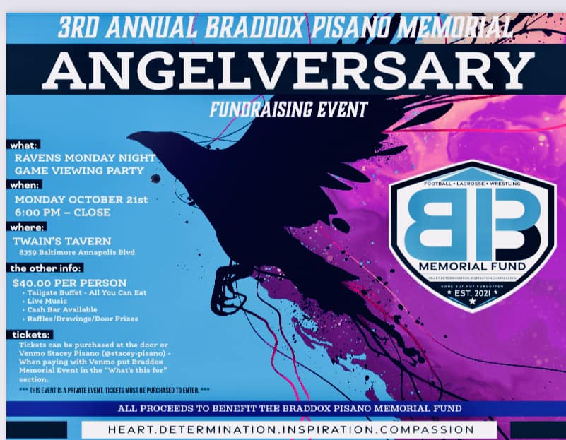 Join us for an extra special Ravens fundraising event to benefit our friends at the Braddox Pisano Memorial Fund.