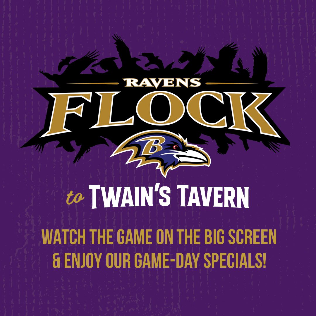 Cheer on the Ravens at Twain’s Tavern—Pasadena’s Game Day Headquarters! The Official Home of Ravens Roost #129.