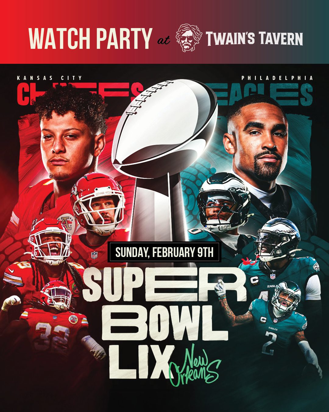 Join us for one last football hurrah as the Eagles take on the Chiefs in the Super Bowl! Enjoy game-day specials PLUS the debut of Good Boy Vodka!!